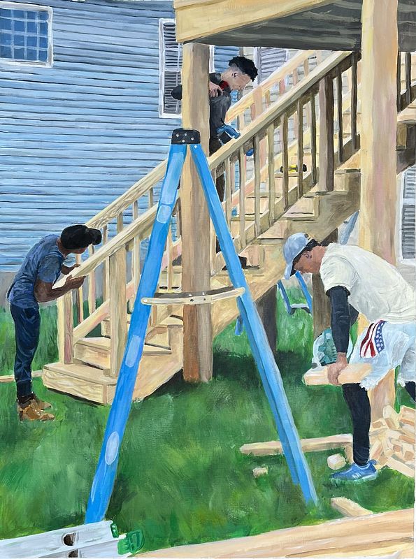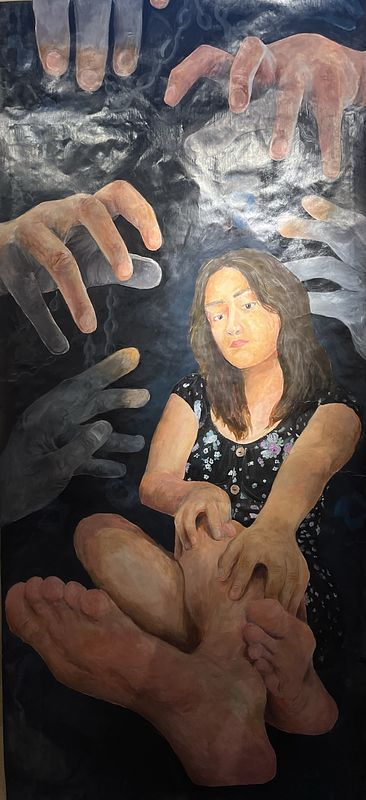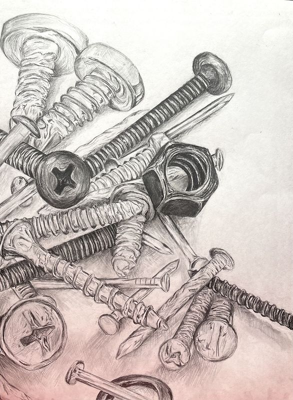 White paper disgusts me. As an artist, I want to fill the empty space with lines and strange blobs. I want to load a paintbrush and sharpen my graphite pencils in an attempt to rewrite reality. I paint the world I see and alter details to decorate my surroundings with bold, vivid colors and harsh strokes. In my world, life is like a coloring book. I can capture a dull moment and create a unique beauty. My inspiration comes from everyday life encounters, from a pile of screws and bolts to a loved one's face. In addition to my realistic style, I challenge myself with abstract and fluid pieces that explore reflective periods. To express oneself is challenging to execute, however, removing the safety net of a sketch is a rewarding experience. It allows for creativity and growth to concur, which is progress I have only begun.